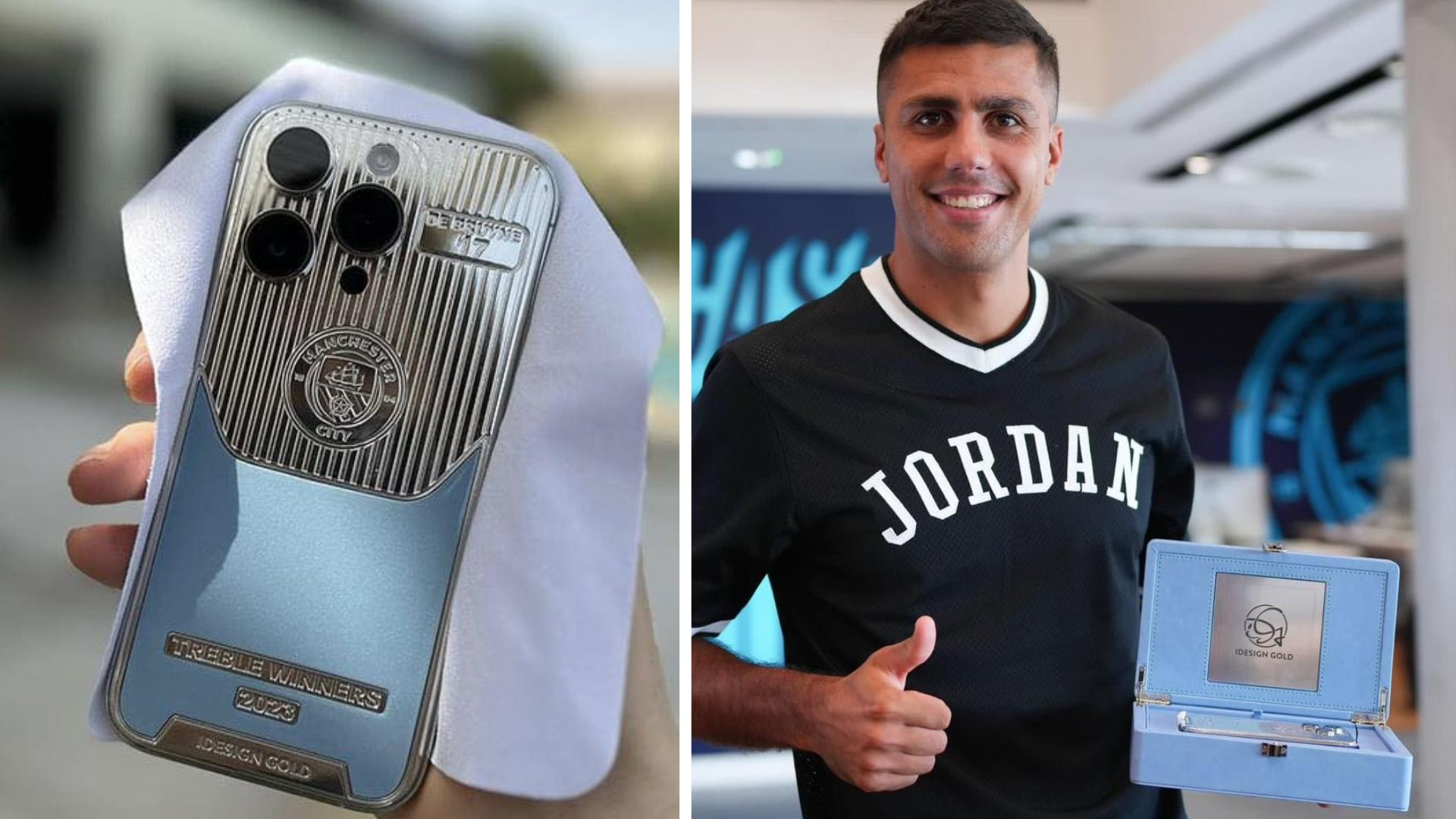 Nhưng dù không dùng mạng xã hội, Rodri vẫn đang sử dụng chiếc iPhone có giá 5000 USD (khoảng 120 triệu đồng). Đây chính là món quà từ người đồng đội Kevin De Bruyne dành tặng sau mùa giải 2022/2023 cực kỳ thành công ở cấp CLB. Được biết, cho đến hiện tại thì Rodri vẫn đang sử dụng chiếc iPhone này.