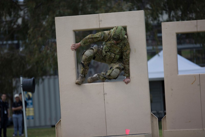 Hãy tưởng tượng cảnh người lính này nhảy xuống đất, chân của anh ấy sẽ phải chịu một chấn động bằng với trọng lượng cơ thể rơi xuống với gia tốc trọng trường g. Để có thể làm giảm phản lực này, các kỹ sư đã sáng chế ra một thiết bị thoát lực được gọi là OX để truyền thẳng chấn động xuống đất.