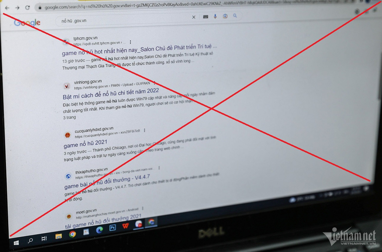 Đơn cử như, ngay thời điểm trưa ngày 11/4, khi tìm kiếm bằng Google với từ khóa liên quan đến một dạng trò chơi cá cược trên mạng kèm tùy chọn là trang có đuôi tên miền “.gov.vn”, hệ thống hiển thị một loạt website của cơ quan nhà nước giới thiệu, chèn link quảng cáo về cờ bạc. Người dùng truy cập thử vào 1 trang web “.gov.vn” theo hiển thị tìm kiếm trên Google thì được điều hướng sang 1 trang quảng cáo trò chơi cá độ 8xbxx08.com