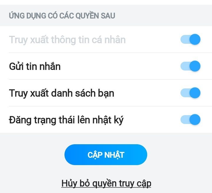 Bên cạnh đó, bạn có thể lựa chọn "Hủy bỏ quyền truy cập" để ứng dụng hoàn toàn không còn quyền truy cập vào tài khoản của bạn.