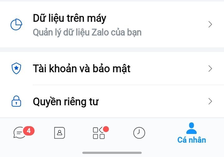 Bước 1: Chọn biểu tượng "Cá nhân" ở góc phải bên dưới giao diện chính > Bấm vào "Quyền riêng tư".