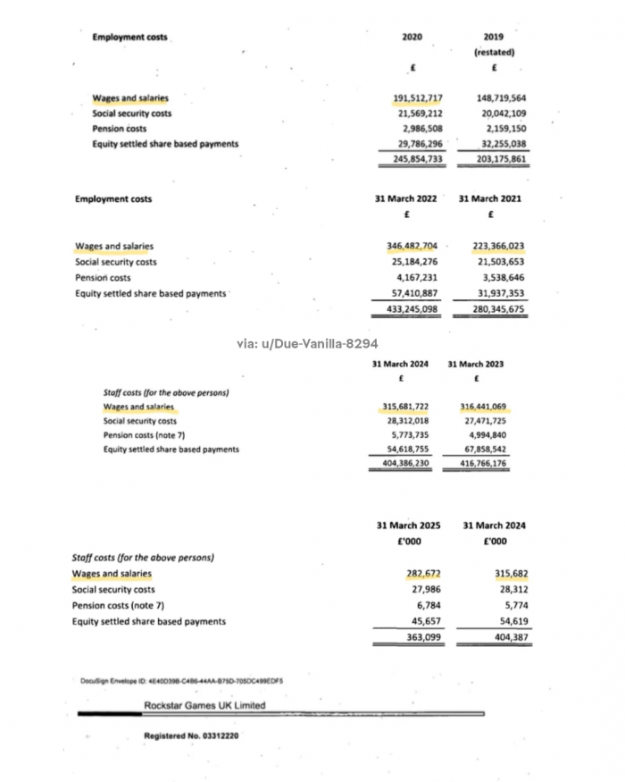 Theo các phân tích mới nhất từ báo cáo tài chính của Rockstar North, chỉ riêng tiền lương nhân viên từ 2019 đến 2025 đã lên tới 2.1 tỷ USD. Khi cộng thêm chi phí vận hành studio, hỗ trợ từ hàng chục studio khác, công nghệ, animation, licensing nhạc... tổng kinh phí phát triển được ước tính khoảng hơn 3 tỷ USD, thậm chí có thể chạm mốc 3.5 đến 5 tỷ USD. Điều này cũng có nghĩa chi phí sản xuất của bom tấn GTA VI thậm chí còn đắt gấp đôi so với chi phí xây dựng tòa tháp cao nhất thế giới, biến đây trở thành tựa game có chi phí sản xuất đắt đỏ nhất trong lịch sử ngành game.