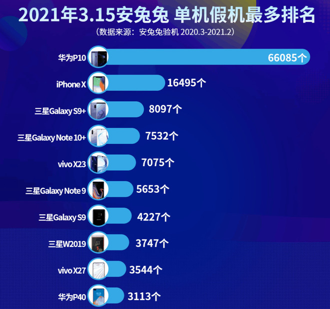 Từ tháng 3/2020 đến tháng 2/2021, AnTuTu đã xác định được số thiết bị giả mạo lên tới 572.303, chiếm khoảng 4,24% tổng số thiết bị được kiểm tra.