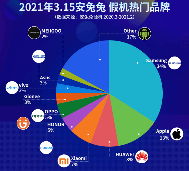 Thị trường smartphone đạo nhái trong năm 2021 nhìn chung tương tự như năm 2020. Vì vậy, các thương hiệu như Samsung, Apple, Huawei, Xiaomi, Honor và OPPO vẫn tiếp tục là bị đạo nhái nhiều nhất.