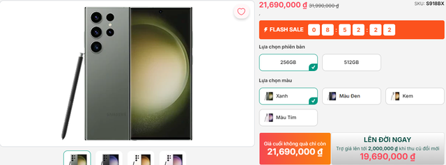 Theo đó phiên bản Galaxy S23 Ultra 8GB/256GB hiện đang bán trên thị trường có giá tham khảo 21,69 triệu đồng. So với Galaxy S24 Ultra vừa ra mắt, phiên bản 2023 hiện đang rẻ hơn tới gần 10 triệu đồng.