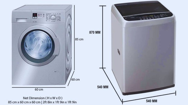 Người dùng cần lựa chọn kích thước máy phù hợp với không gian nhà mình, hay cụ thể là với vị trí sẽ đặt máy. Nếu chọn mua máy giặt cùng với máy sấy và sẽ đặt 2 thiết bị chồng lên nhau, cần so sánh kích thước 2 máy rồi mới đưa ra quyết định hợp lý.