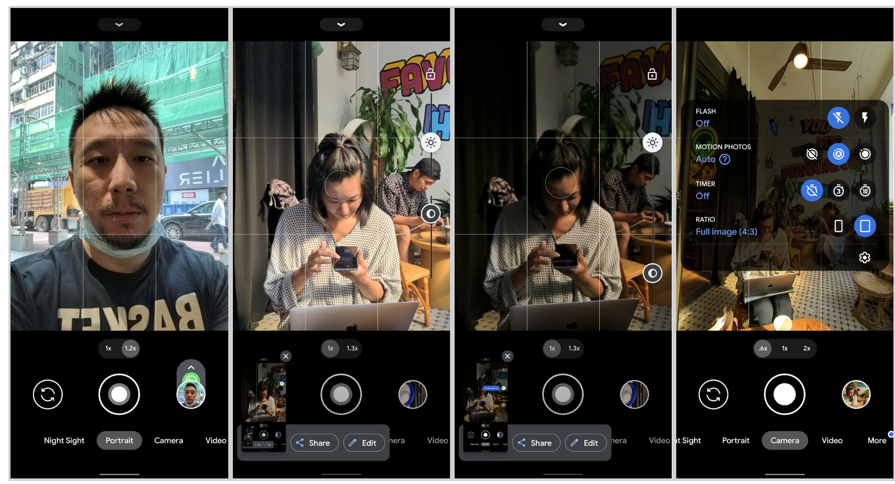 Cả hai đều thiết kế UI theo triết lý tối giản, so với các hãng Android khác thì "sơ sài" hơn nhiều. Không có chế độ thủ công (manual), cho thấy Apple và Google có cùng một suy nghĩ: hướng tới những người dùng smartphone cơ bản chỉ biết giơ lên và chụp, còn lại để cho nhiếp ảnh điện toán lo. Tôi (tác giả Ben Sin) đồng ý với quan điểm này, nhưng do có nhiều hơn kinh nghiệm trong nhiếp ảnh, tôi đã bỏ lỡ khả năng điều chỉnh cân bằng trắng và tốc độ màn trập khi cần thiết.