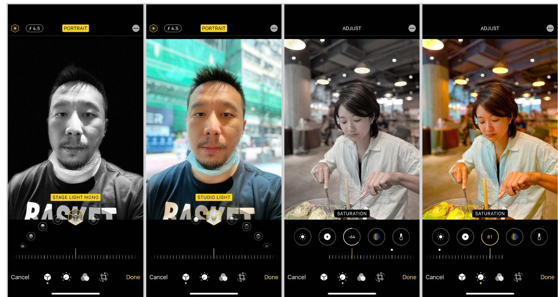 Google Pixel 5 dùng thanh trượt để điều chỉnh highlight và shadow theo thời gian thực, theo tôi thì nó trực quan hơn cách làm của iPhone. Sau khi chụp, bạn có thể tận dụng các công cụ chỉnh sửa ảnh phong phú mà hai công ty cung cấp, điều chỉnh tương phản, nhiệt màu, cắt cúp ảnh,... theo ý thích. Trong khi Google vượt trội hơn về công cụ hậu kỳ ảnh, khả năng biên tập video của iPhone lại tiến xa hơn, trang bị đến tận răng.