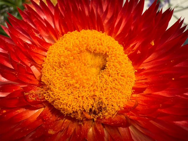 Với camera góc siêu rộng được làm mới, iPhone 16 Pro Max giúp việc chụp ảnh macro trở nên dễ dàng hơn vì có thể đến gần chủ thể hơn nhiều so với Galaxy S24 Ultra. iPhone thể hiện tốt đến mức có thể nhìn thấy con nhện ẩn giữa bông hoa, trong khi Galaxy bị hiệu ứng làm sắc nét quá mức.