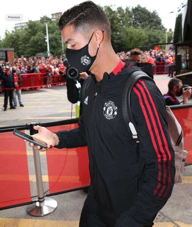 Không làm người hâm mộ thất vọng Ronaldo đã có một màn cống hiến hết mình trong màu áo MU, góp phần giúp đội bóng giành chiến thắng đậm 4-1. Trước giờ bóng lăn, những hình ảnh của Ronaldo cũng được netizen săn lùng nhiệt tình. Trong đó, nhiều người đã phát hiện chiếc điện thoại siêu sao bóng đá đang sử dụng.