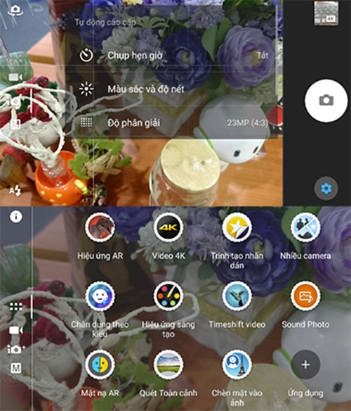 Ứng dụng camera trên Xperia Z5 có giao diện mới, thoáng hơn. Việc chuyển đổi giữa chế độ chụp tự động với thủ công, quay video hay các tính năng khác chỉ cần vuốt màn hình. |