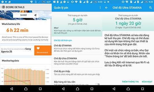 Thời lượng pin trên Xperia Z5 2 sim tốt, đủ dùng 1 ngày và khi cạn có thể kéo dài với các chế độ tiết kiệm. |