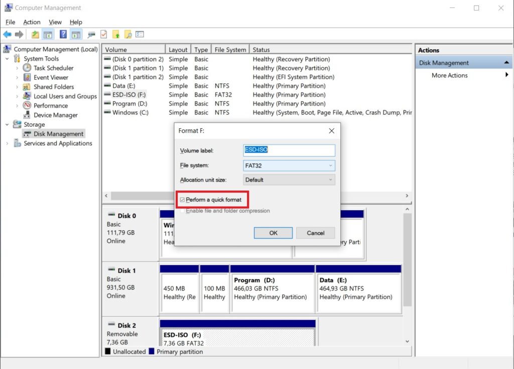 Khi chọn Quick Format thì Windows sẽ thực hiện các bước “xóa” dữ liệu ở bên trong, tạo system file mới chọn, đặt lại tên của ổ cứng đó và cluster size. Lưu ý “xóa” dữ liệu ở đây không hẳn là xóa hoàn toàn nhé.