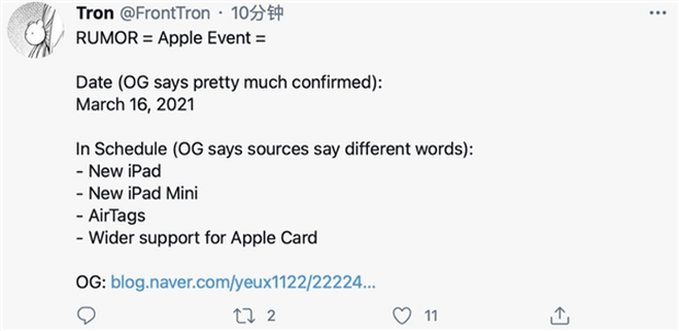 Theo thông tin đáng tin cậy từ leaker @FrontTron, Apple sẽ tổ chức buổi giới thiệu sản phẩm mới của mình vào ngày 16/3. Ngoài ra, những cái tên của các thiết bị sẽ được công bố ở đó.