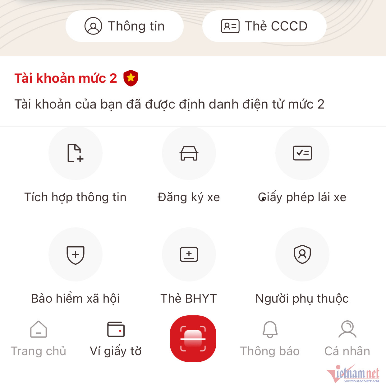 Tài khoản định danh điện tử mức 2 được tích hợp nhiều thông tin, giấy tờ quan trọng như: Đăng ký xe; Giấy phép lái xe; Bảo hiểm xã hội; Thẻ bảo hiểm y tế; Người phụ thuộc; Thông tin về thuế; Hộ chiếu; Thông tin cư trú...