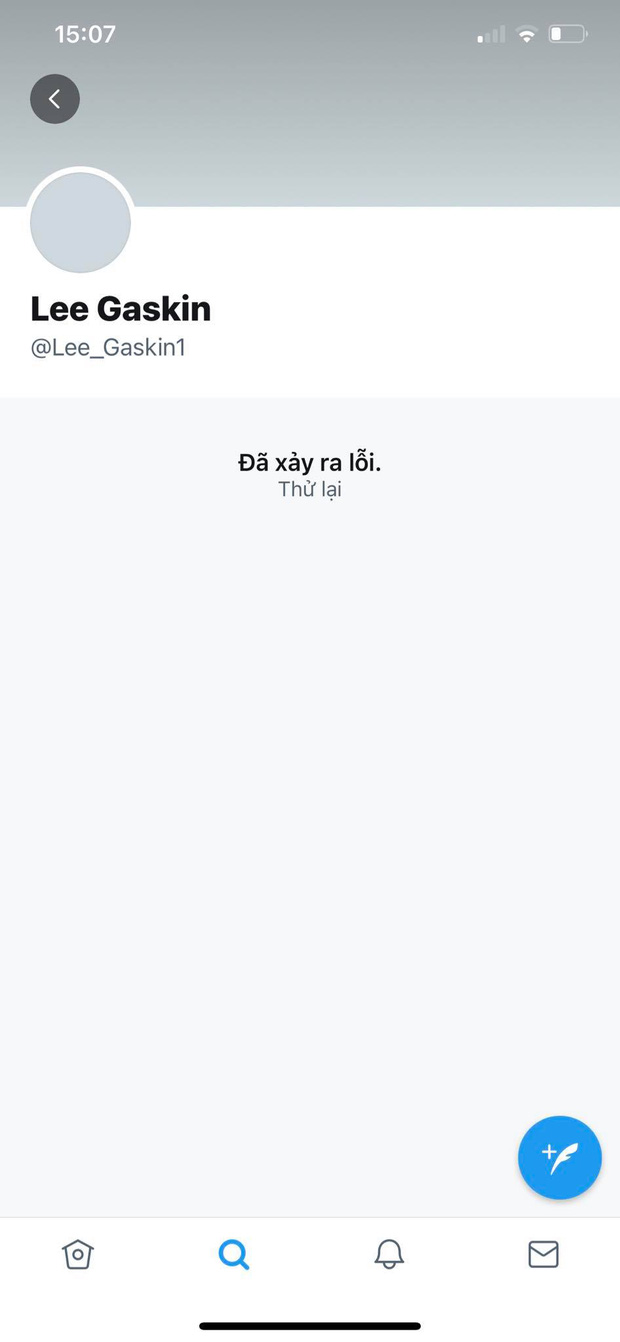 Khi truy cập vào tài khoản của Lee Gaskin, người dùng chỉ bắt gặp dòng thông báo: "This account doesn't exist", tạm dịch là "Tài khoản này không tồn tại".