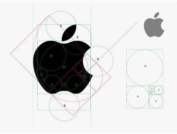 Logo Táo khuyết được thiết kế không hề đơn giản như nhiều người nghĩ, nó được thiết kế theo nguyên lý tỷ lệ vàng với hình chữ nhật và dãy số nguyên Fibonacci.