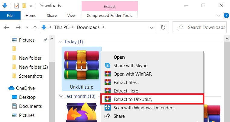 Bước 2: Sau khi tải về xong, bạn giải nén file UnxUtils.zip bằng cách click chuột phải rồi chọn Extract to UnxUtils.