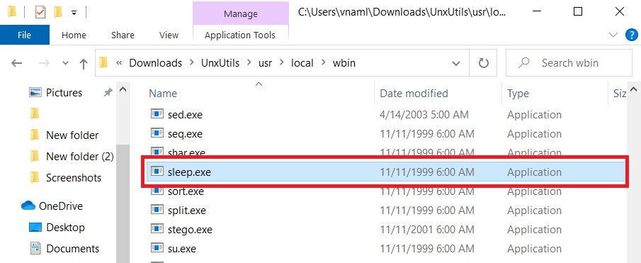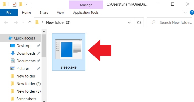 Bước 6: Sau đó paste file sleep.exe mà bạn Cut ở bước 4 vào thư mục bạn mới tạo này.
