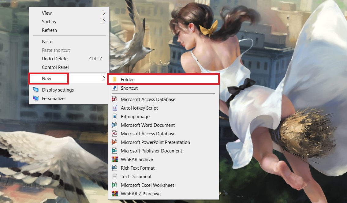 Bước 5: Click chuột phải vào desktop, chọn New rồi chọn Folder để tạo một thư mục.
