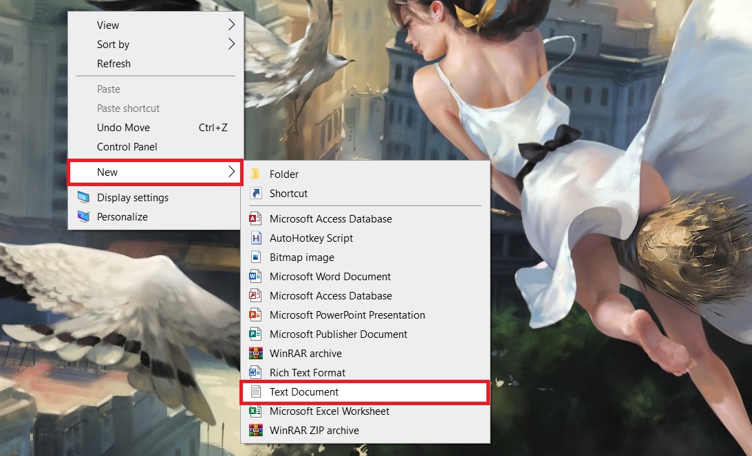 Bước 7: Click chuột phải vào desktop, chọn New rồi chọn Text Document để tạo một Notepad.