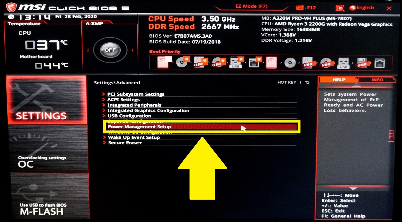 Sau đó, chọn Power Management Setup.