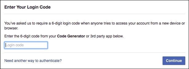 Bạn có thể nhận đoạn mã xác minh bằng tin nhắn SMS hoặc thông qua Trình tạo mã (Code Generator) trong Facebook, hoặc một ứng dụng tạo mã từ bên thứ ba.