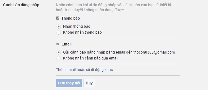 Như tên gọi của nó, khi kích hoạt Cảnh báo đăng nhập (Login Alerts), Facebook sẽ gửi thông báo (hoặc email, tin nhắn SMS) mỗi khi có người đăng nhập vào tài khoản của bạn từ một thiết bị hoặc trình duyệt lạ.