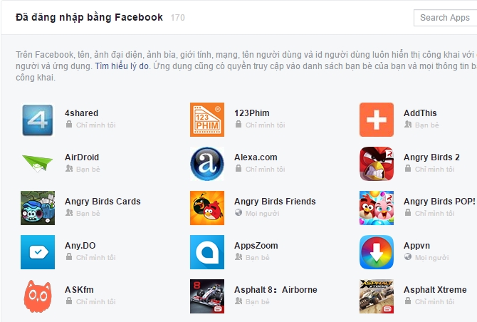 Tuy nhiên, có nhiều ứng dụng lại đòi hỏi quá nhiều thông tin từ bạn, nếu không muốn (hoặc không sử dụng chúng) nữa thì hãy xóa chúng trong phần Ứng dụng (Apps).