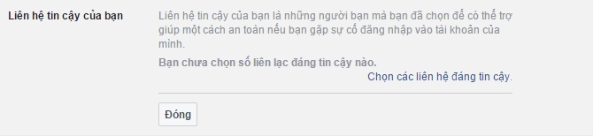 Liên hệ tin cậy (Trusted Contacts) cho phép bạn lựa chọn từ 3 đến 5 người mà bạn cho là tin tưởng nhất, liên hệ để giúp bạn đăng nhập vào Facebook. Khi được "kêu cứu", họ sẽ nhận một đoạn mã, gửi cho bạn và bạn sẽ dùng đoạn mã đó để truy cập vào tài khoản.