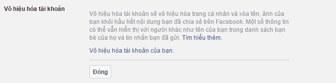 OK fine! Có lẽ khóa Facebook là cách tốt nhất để mọi thông tin của bạn "trôi vào dĩ vãng", chỉ cần nhấn Vô hiệu hóa tài khoản của bạn (Deactive), nhập mật khẩu rồi làm theo hướng dẫn, bạn sẽ không còn phải lo lắng chuyện thông tin của mình bị lộ nữa.