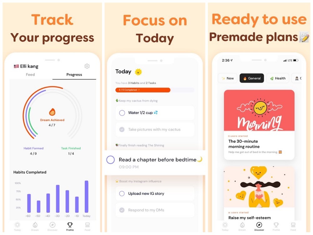 Ứng dụng này cung cấp nội dung phong phú về các bộ sưu tập giúp hướng dẫn hình thành các thói quen tích cực để rèn luyện khả năng tập trung, giảm cân, cải thiện giấc ngủ, thêm năng lượng… và đưa ra các thử thách kèm hướng dẫn giúp người dùng rèn luyện thói quen nhanh chóng.