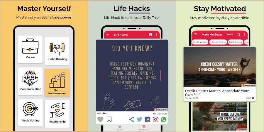 Với Make Me Better, người dùng được trải nghiệm kho nội dung phong phú xoay quanh những câu chuyện thành công, mẹo vặt cuộc sống… để giúp bạn ngày càng trở nên tốt hơn và đạt đến mục tiêu theo cách hiệu quả nhất có thể.
