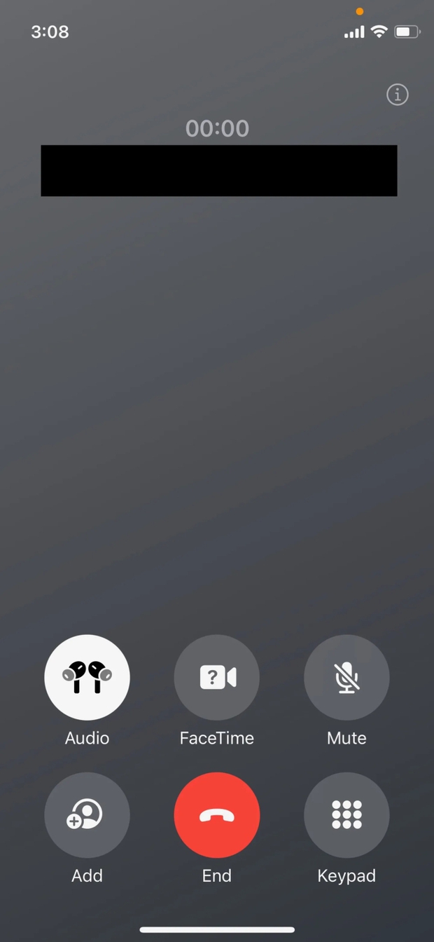 Các tùy chọn cài đặt cuộc gọi vốn nằm riêng lẻ bên trên, cũng được chuyển xuống vị cuối màn hình cùng nút End Call. Hình ảnh cho thấy, giao diện khi thực hiện cuộc gọi giờ đây sẽ bao gồm Audio, FaceTime, Mute (tắt tiếng), thêm cuộc gọi (Add), End Call và truy cập bàn phím (Keypad).