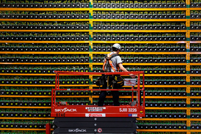 Một người đàn ông đeo khẩu trang, kính không gọng và đội mũ cứng màu trắng đang đi dạo gần lối vào của một nhà kho đầy ắp hàng đống máy khai thác tiền kỹ thuật số đã kết nối Internet. Khi quay máy ảnh vào gần để giới thiệu máy móc, anh ta nói bằng tiếng Trung Quốc: "Đây là lô hàng dành cho bạn. Chúng thậm chí còn chưa bắt đầu khai thác bitcoin".