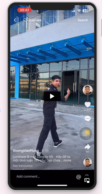 Ba tháng sau, tài khoản TikTok của Luxshare đăng video thông báo họ sẽ tăng phần thưởng cho những nhân viên giới thiệu thành công người lao động mới từ 1 triệu đồng lên 1,8 triệu đồng nếu người mới được tuyển dụng ở lại làm trong 60 ngày.