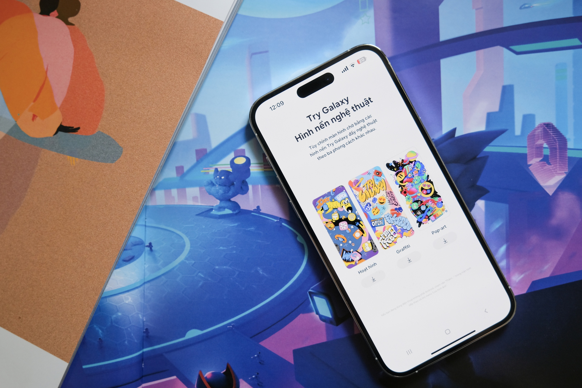 Khi sử dụng ứng dụng, người dùng cũng có thể khám phá các Chủ đề Galaxy mới hoặc thêm hình nền khác bên cạnh kho hình nền sẵn có. Tất cả tính năng này đều được cung cấp trên Galaxy S24 Ultra. Một điểm cộng khác là kho hình nền cung cấp đến ba loại Hình nền Nghệ thuật bao gồm graffiti và pop art có thể tải xuống để làm hình nền.