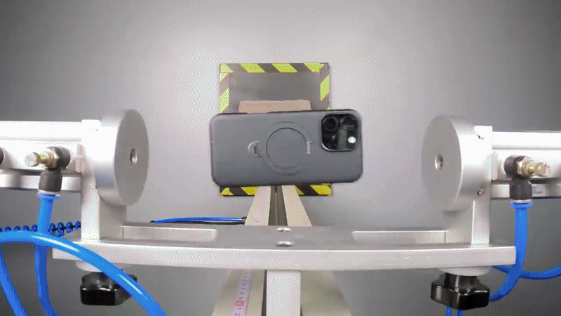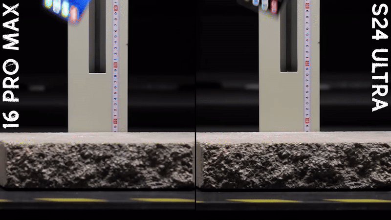 Trong bài thử nghiệm, robot thả iPhone 16 Pro Max và Galaxy S24 Ultra ở độ cao từ khoảng 5 đến 6 feet (từ 1.5m-1.8m), mô phỏng tình huống người dùng làm rơi điện thoại khi đang nói chuyện hoặc trong lúc đưa điện thoại lên tai.