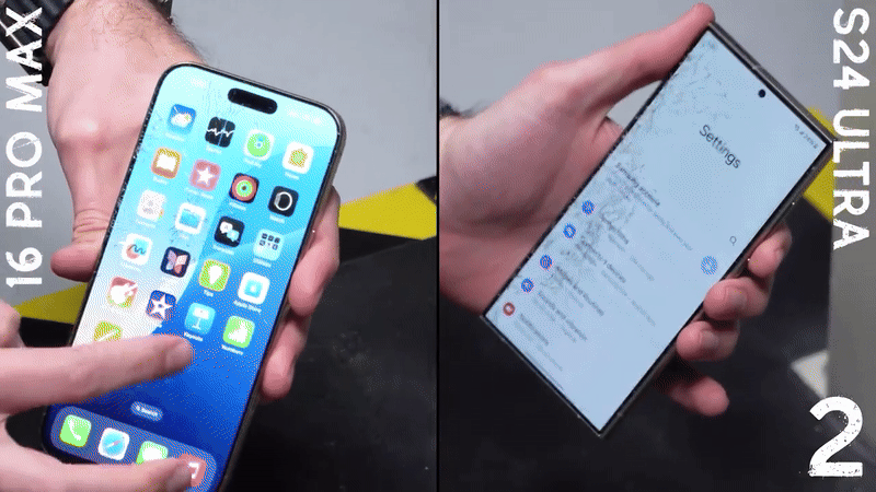Dù cả hai điện thoại đều tiếp tục hoạt động sau khi màn hình bị nứt, nhưng iPhone 16 Pro Max không bị tắt nguồn như trong thử nghiệm trước đó, khi nó rơi trúng viền màn hình.