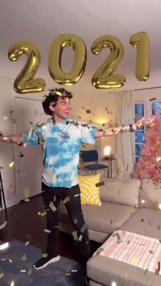 Nhờ khai thác công nghệ LiDAR trên iPhone 12 Pro, hiệu ứng hoa giấy chúc mừng năm mới của TikTok có khả năng đậu trên ghế đệm và trên người trong khung hình.
