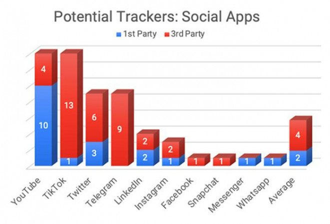Trong khi đó, TikTok, thuộc sở hữu của hãng công nghệ Trung Quốc ByteDance, lại có xu hướng cho phép các trình theo dõi của bên thứ ba thu thập dữ liệu người dùng, từ sự tương tác với các bài đăng, cho đến thời gian đăng bài, vị trí thực hay thậm chí là cả thông tin cá nhân của họ. Do đó thật khó để có thể biết được là dữ liệu của người dùng sẽ được sử dụng như thế nào. Thậm chí, nghiên cứu cũng cảnh báo rằng hoạt động của người dùng trên các trang web khác ngay cả sau khi đã tắt ứng dụng cũng có thể bị theo dõi.