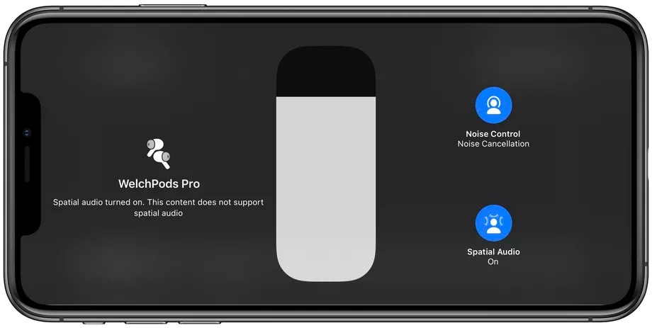 Tiếp theo là âm thanh không gian (Spatial Audio), chỉ dành riêng cho AirPods Pro. Với tính năng này, Apple đang cố gắng đưa trải nghiệm âm thanh vòm đắm chìm vào 2 bên tai nghe. Thay vì nghe mọi thứ bằng stereo như bình thường, tính năng này sẽ mang lại cho bạn cảm giác giống như đang ngồi ngay tại đó khi phát nội dung trong ứng dụng hỗ trợ âm thanh không gian. Cho đến nay, đã có một vài ứng dụng có thể làm được điều đó, bao gồm Apple TV, Disney Plus và HBO Max. Dẫu vậy, Netflix và Amazon Prime Video vẫn chưa hỗ trợ.