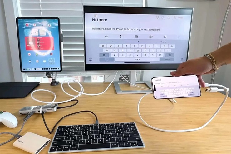 Tuy nhiên, mới đây, một số chuyên gia công nghệ đã chỉ ra một công dụng mới của USB Type-C trên iPhone 15 Series. Theo đó, một ứng dụng mang tên InfiniteX2P đang được phát triển để có thể biến những chiếc iPhone 15 thành một dạng máy tính. Sau khi kết nối bàn phím và chuột qua Bluetooth với điện thoại, sau đó cắm màn hình qua USB, ứng dụng này sẽ biến thành một hệ điều hành thu nhỏ.