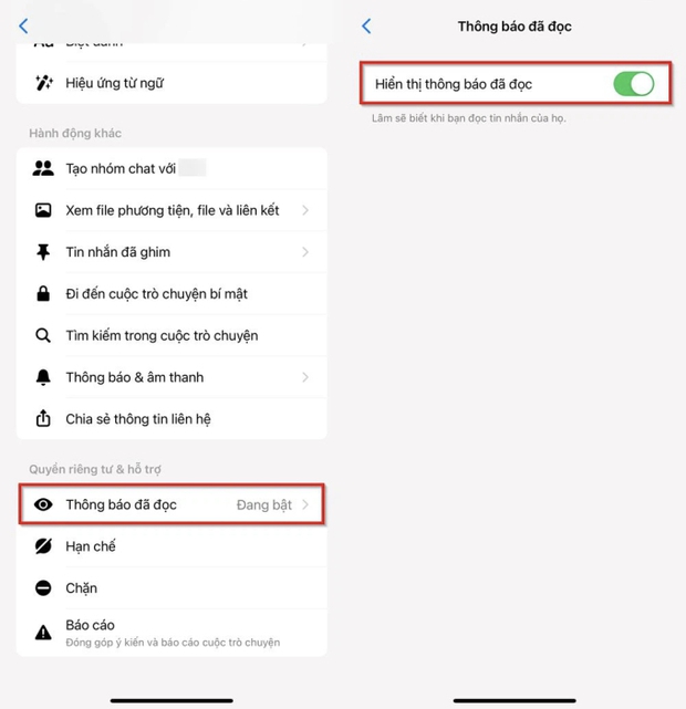 Bước 3: Lướt xuống dưới cùng và chọn Thông báo đã đọc ở mục Quyền riêng tư & hỗ trợ > Tắt Hiển thị thông báo đã đọc. Khi tắt tính năng này, tài khoản đó sẽ không biết được khi nào bạn đọc tin nhắn của họ.