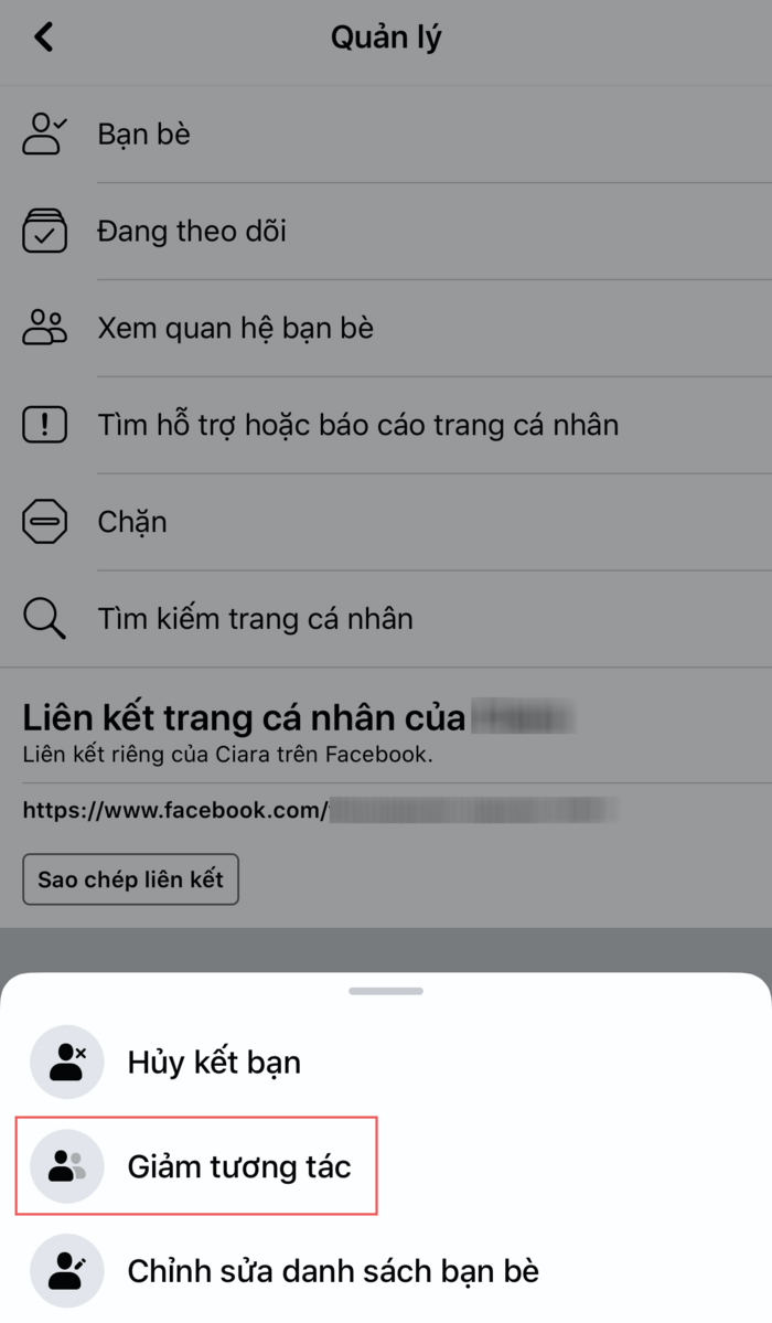 Bước 2. Lúc này, 3 tùy chọn giảm tương tác với đối phương sẽ hiển thị trên màn hình, 3 tuỳ chọn này bao gồm: