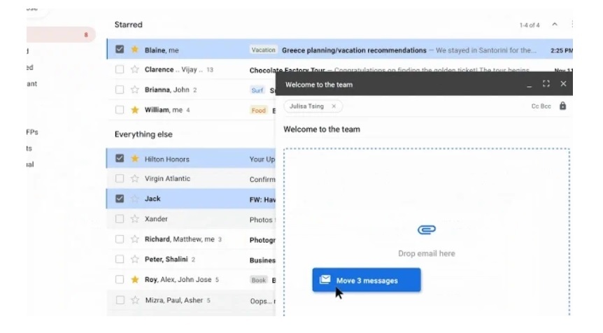 Quá trình thực hiện vẫn giống soạn thảo một e-mail thông thường, rồi sau đó kéo và thả dòng tiêu đề từ danh sách e-mail. Gmail ngay lập tức nhận diện đó là tệp đính kèm và chuyển thành các tệp tin có đuôi “.eml”.