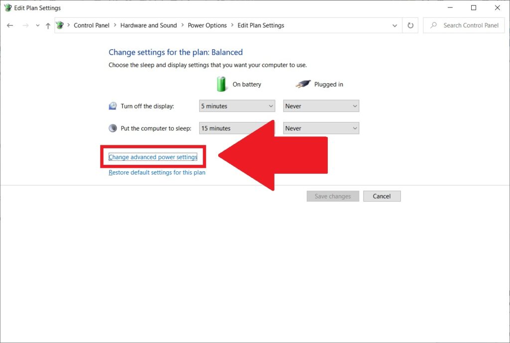 Sau đó, bạn chọn Change Advanced Power Settings để mở các tùy chọn.