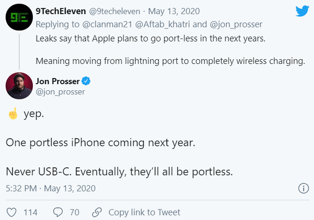 Kế đến, cũng từ Jon Prosser, iPhone thế hệ mới có khả năng sẽ không hề có cổng sạc. Tức là sẽ chẳng có USB Type C như người dùng vẫn mong đợi. Để thay thế cho biện pháp sạc có dây thông thường, Apple rất có thể sẽ hoàn thiện chuẩn sạc nam châm MagSafe, vốn là tính năng được cho là thừa thãi trên iPhone 12 Series.