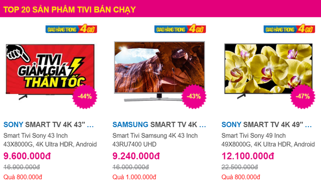 04/07/2020 14:58Top tivi 4K bán chạy nhất giảm giá sâu tới 50% trong tháng 7, có chiếc chỉ 9 triệu đồng