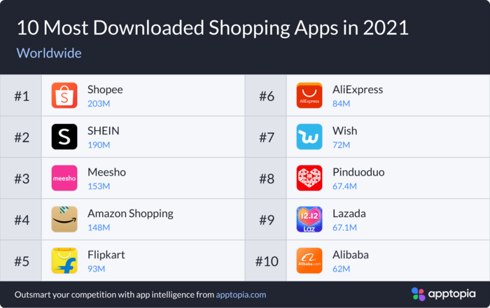 10 ứng dụng mua sắm phổ biến nhất năm 2021